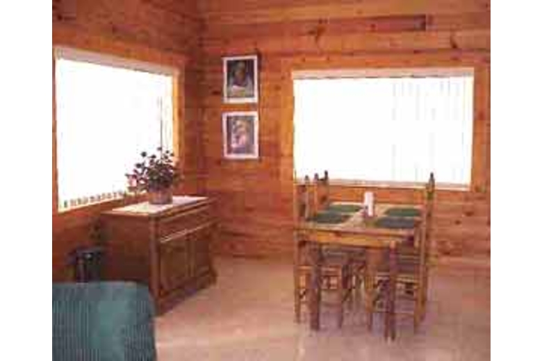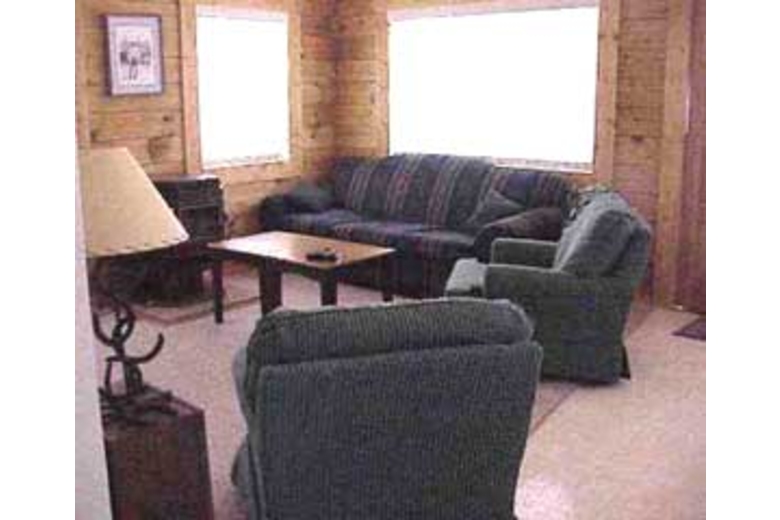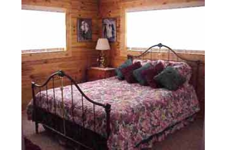 Sleeps 6-7, has a bedroom w/Queen and loft w/2 Queens. Spacious full sized bath. Satellite TV, VCR, Stereo w/CD and telephone. Comfortable dining and living room - tastefully decorated. Coffee, creamer, sweetener/sugar, laundry soap/dryer sheets, TP and paper towels provided. Fully equipped kitchen w/full sized refrigerator/freezer, microwave, coffee maker, range/oven, washer & dryer, BBQ. Pellet stove - providing warmth and ambiance. Deck with patio furniture - providing awesome views of Escadilla mountain and Luna Lake. Resident wildlife (elk, racoons, squirrels, birds) etc. Horses can be boarded for $7-$10 per day.