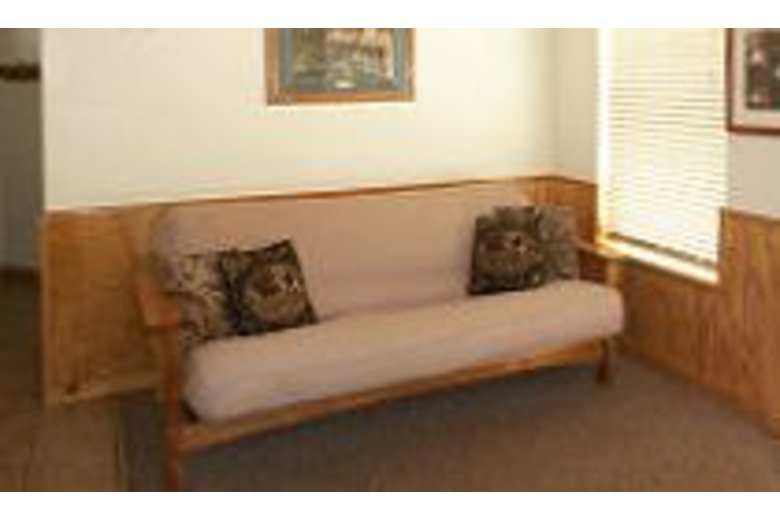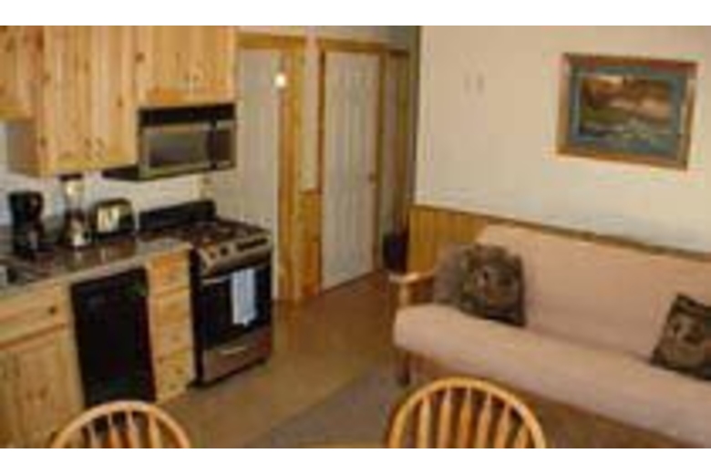 This cozy updated log cabin is the perfect getaway, after staying here you won't want to go home . Accommodations include one king size bed, one futon and one rollaway. All towels, bedding and pillows are provided. The kitchen is fully equipped and has all necessary utensils, a coffee maker and a supply of premium coffee. For entertainment there is a television with HBO and a DVD player.Surrounding Description