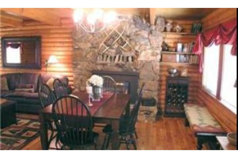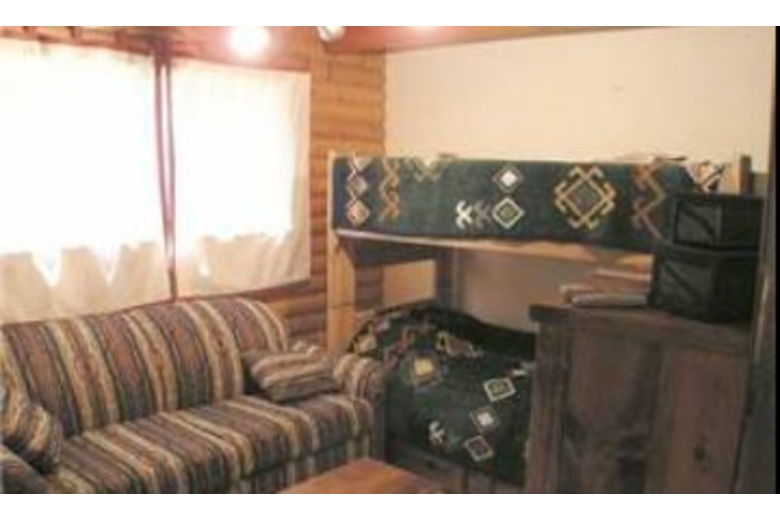 This cabin offers three bedrooms and two bathrooms. The master includes a California king bed with a queen bed in the second bedroom and a twin bunk bed in the third. There is also a sleeper sofa in the living room for additional bedding. The living room is nicely furnished, which adjoins the dining area and fully equipped kitchen. Other great features include a gas fireplace, flat panel TV, private hot tub and a laundry room.Surrounding Description