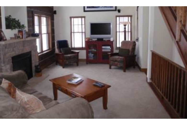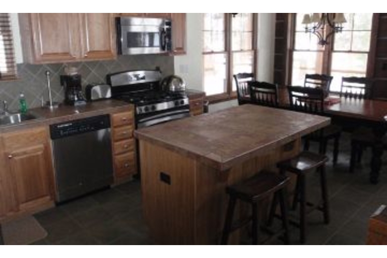The kitchen in this cabin has a large island and stainless steel appliances. The living area is spacious and has a gas fireplace, a perfect place to visit with family and friends after a day on the mountain. The master bedroom has a king bed and a separate tub and shower in the bathroom. The second bedroom has a queen bed. The third bedroom has a bunk bed with a full bed on the bottom and a twin bed on the top. There is a queen sleeper sofa. Enjoy four TV's, satellite TV, and a washer and dryer in this cabin.Surrounding Description