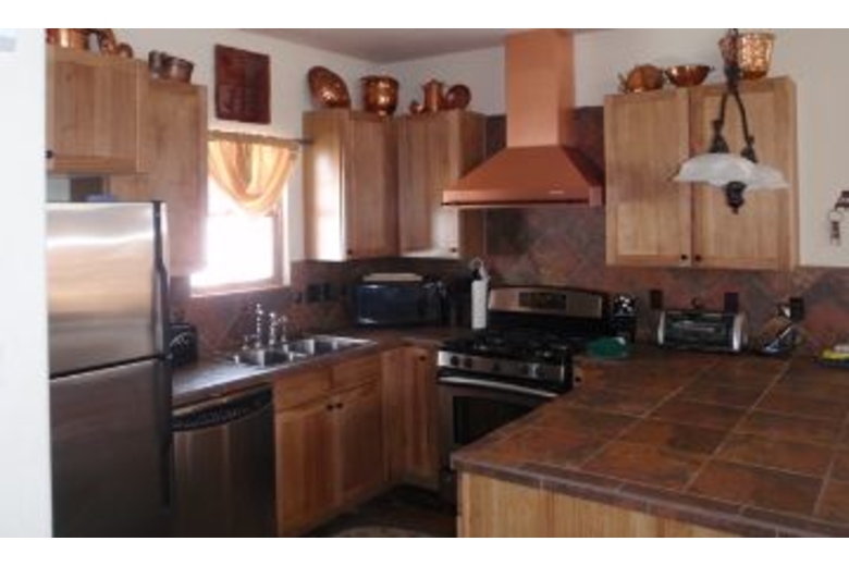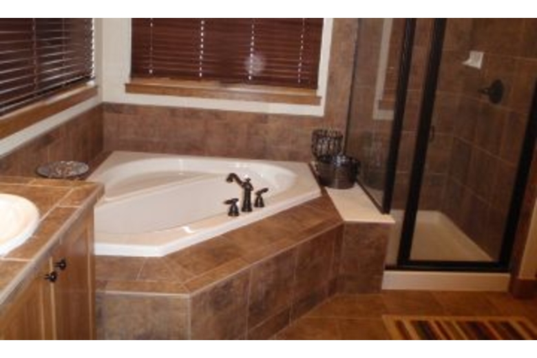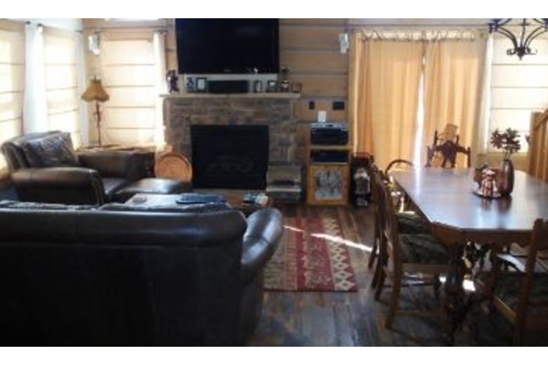 This rustic cabin has a great kitchen with stainless steel appliances and a tile counter top, a perfect place to cook a gourmet meal. The living area is spacious and has great furniture and a gas fireplace. The master bedroom has a king bed and in the master bath enjoy soaking in the very large corner bathtub. This home has four TV's, a DVD player and a two car garage. There is also a washer and dryer for you convenience.Surrounding Description