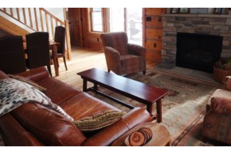 The living area has very high ceilings and nice wood floors. Enjoy the large windows to gaze at the pines covered in snow. The kitchen has stainless steel appliances and a breakfast bar with two barstools. The master bedroom has a king bed and in the master bath enjoy a corner bathtub and separate shower. This cabin has a two car garage and a washer and dryer.Surrounding Description