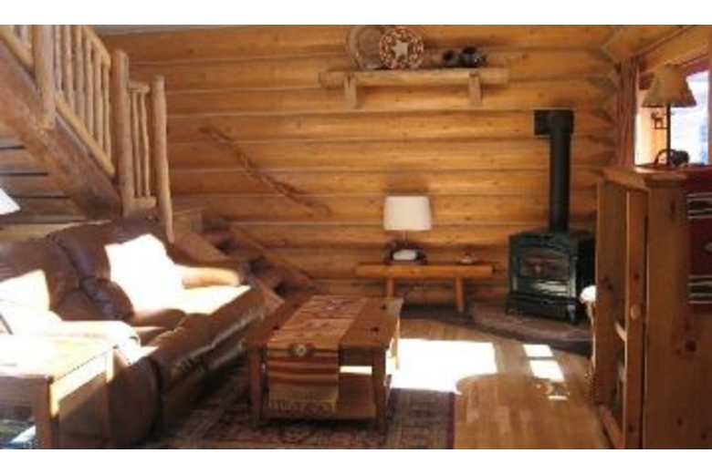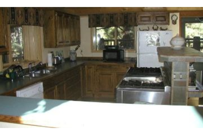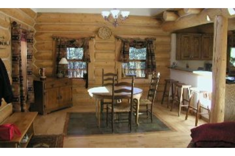 Very sunny, bright, beautiful log cabin set on three acres of ponderosa pines. It is located just four miles from town and very close to the ski area.