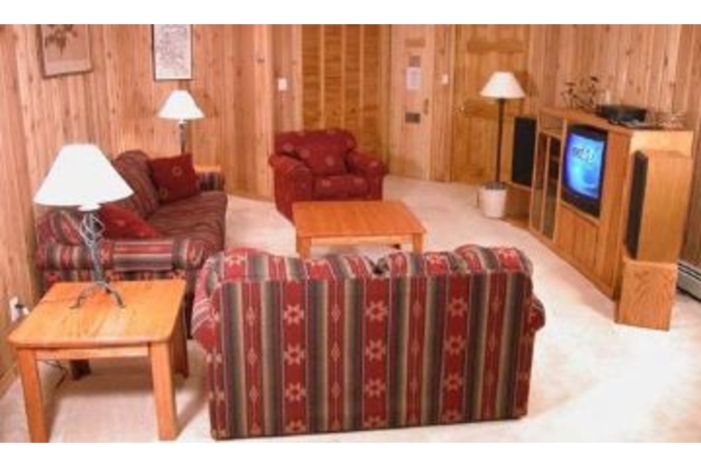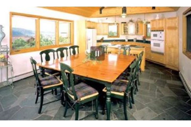 Boasting 4 bedrooms and 4 and one-half bathrooms, the Ski Trail Lodge 2 home can sleep 12 people. There is a king-size bed in one bedroom, a queen-size bed in another and 2 twin beds in each of the other two bedrooms. There is also a queen-size sleeper sofa and a queen-size Murphy bed in the den. The upstairs kitchen/dining room/living room is T-shaped and very open. Additional amenities include a fully equipped kitchen, a washer and dryer, a wood burning fireplace, 6 TVs and a VCR, a CD/stereo/tape player, and a 2 car garage. It is not on a bus or shuttle route, so a car is recommended. A 4- wheel drive is recommended in the winter. Taxi service is also available. Views from the deck and living room are fabulous and panoramic.Surrounding Description