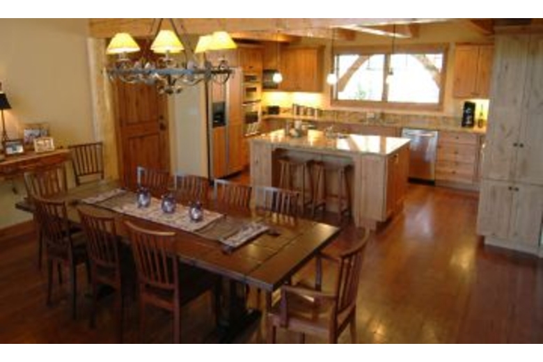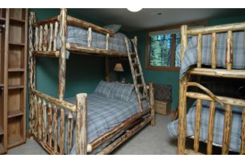 This tastefully decorated lodge has spared nothing when it comes to details. Enjoy the high ceilings and beautiful beam work throughout this home. The large windows in the great room allows natural light to come in as well as a peaceful wooded view that you can enjoy while relaxing by the gas fireplace. The family room has plenty of seating, satellite television, and a DVD player. The dining and kitchen areas have gorgeous hardwood floors throughout. The dining room has a large table that will seat ten guests. The fully equipped kitchen has lovely granite counters, stainless steel appliances, and additional seating for two at the island. The nicely decorated bedrooms, which will accommodate twenty guests, offer one king bed, two queen beds, three twin beds, two bunk beds with a queen and twin mattress, one bunk bed with two twin mattresses, and one bunk bed that is three twin mattresses high! Come relax in the hot tub out on the deck or play a game of pool in the game room.Surrounding Description