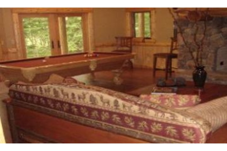 The Toccoa river views can be viewed from just about every room. New upscale designer rustic furnishings offering beauty and comfort and solid Hickory flooring throughout the home. The layout of the house features two master suites each having its own whirlpool tub. One suite is located on the lower level the other suite is on the upper level and both have top of the line king size pillow top mattresses. The main floor features two guest bedrooms with a shared bathroom each bedrooms has a queen size pillow top mattresses. The fifth bedroom is on the lower level features twin beds that also have pillow top. Most of the bedrooms have satellite TV with remote controls. A media room, pool table, private hot tub, gourmet kitchen, gorgeous bedrooms with amazing furnishings and top-of-the-line fixtures in the bathrooms are just a few of the great amenities you will enjoy. The loft area includes a sleeper sofa, office and sitting entertainment area.Surrounding Description