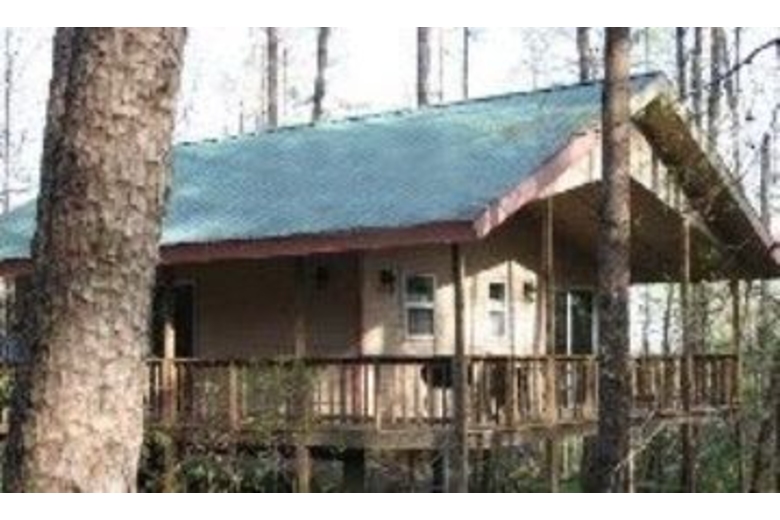This is a one bedroom, one bath cabin. There is a spacious bedroom with a king size bed and a sitting area. The living room is cozy with comfortable furniture and a gas fireplace. The kitchen comes fully equipped for your convenience.Surrounding Description