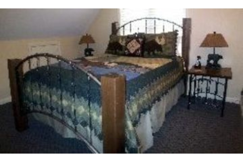 This is a one bedroom, one bath cabin with a loft. In the bedroom there is a queen bed and in the loft there is a futon. Next to the dining area there is a sitting area with comfortable furniture and a gas fireplace. The kitchen comes fully equipped for your convenience.Surrounding Description