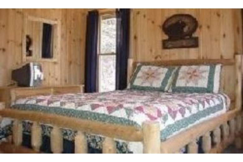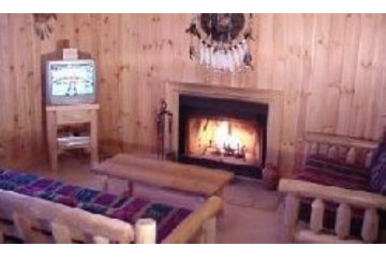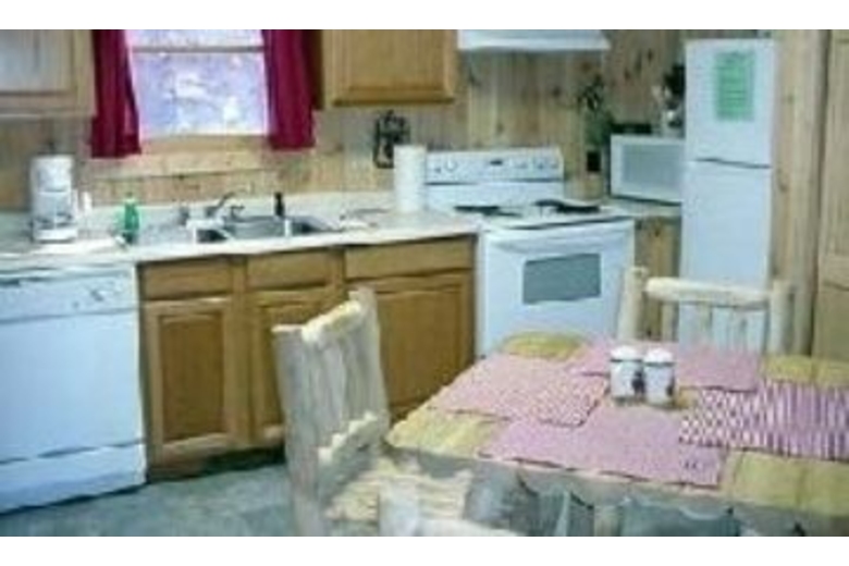 This cabin has two bedrooms and two bathrooms. In both bedrooms you will find queen beds. The kitchen comes fully equipped and the living room has comfortable furniture and a wood burning fireplace.Surrounding Description