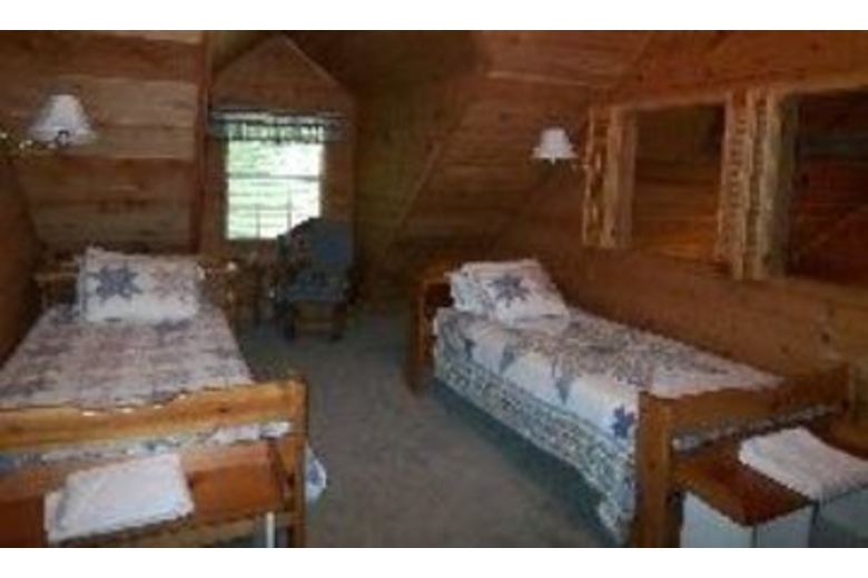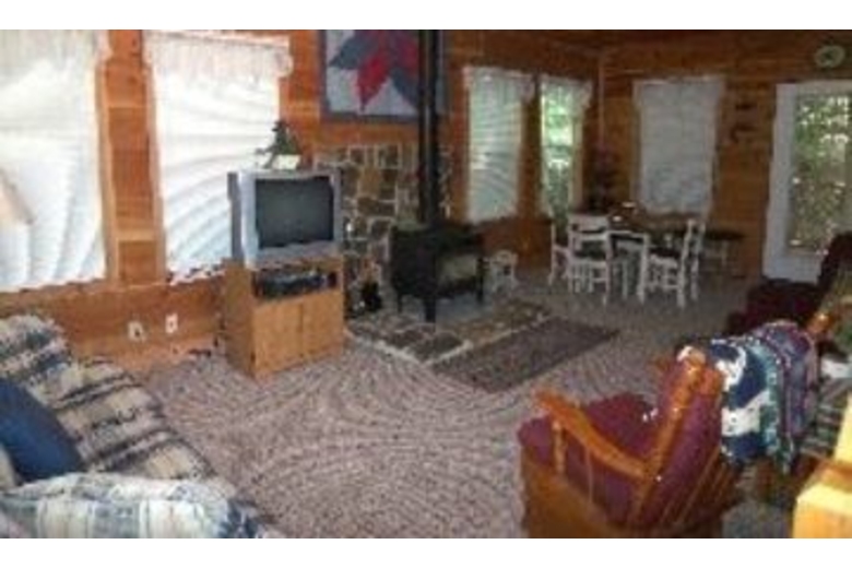 This cabin has two bedrooms and two baths. In the first bedroom there is a queen bed and in the second bedroom there are two twin beds. The kitchen comes fully equipped for your convenience.Surrounding Description