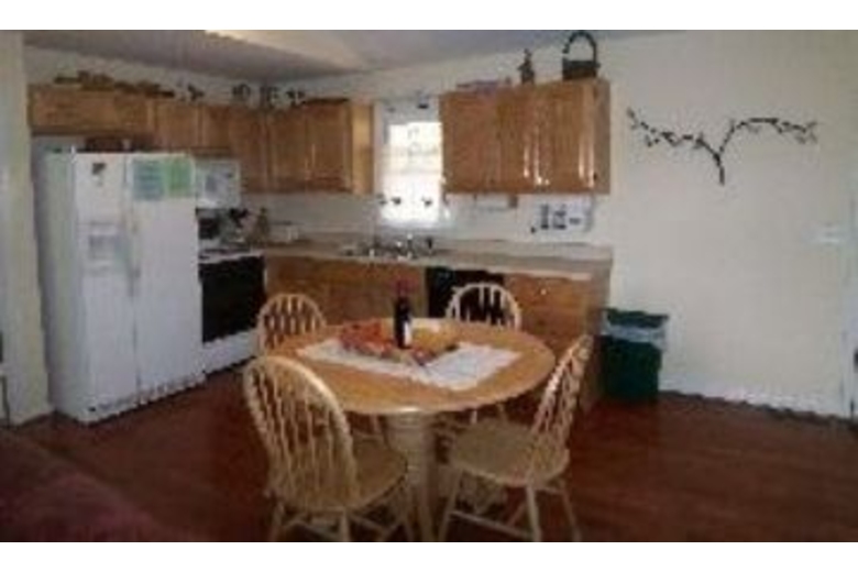 This cabin has two bedroom and two bathrooms. The first bedroom has a king bed and the second bedroom has a queen bed. The living room is light with a rock fireplace. The kitchen comes fully equipped to make your stay relaxing.Surrounding Description