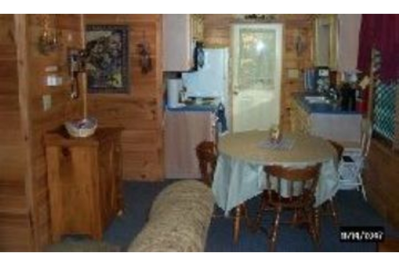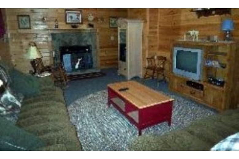 This cabin has three bedrooms and two bathrooms. In the first bedroom there is a king bed, in the second bedroom there is a queen bed and in the third bedroom you will find two twin beds. There is a large living room with a wood burning fireplace and a television.Surrounding Description