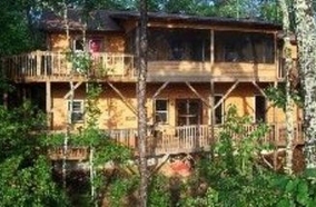 This cabin features three bedrooms and two bathrooms. In all three bedrooms there are queen beds. The living room has comfortable furniture. The kitchen comes fully equipped for your convenience.Surrounding Description