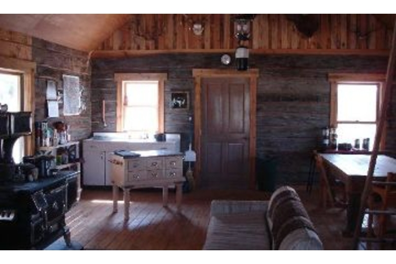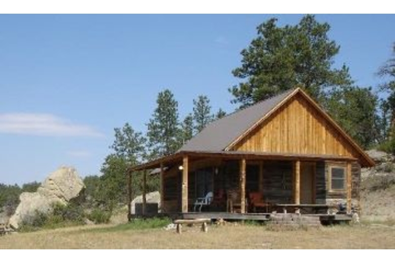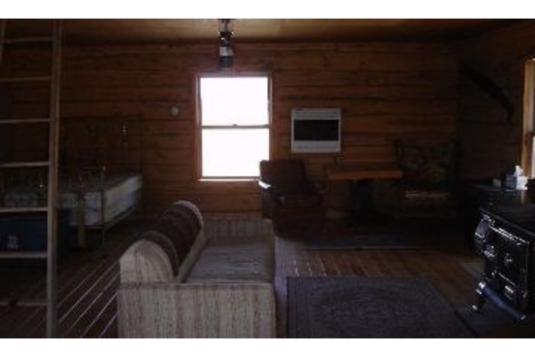 This is a private cabin with a wrap-around porch. It is one bedroom cabin with a loft that sleeps 6. There is a great rustic family room where you can relax after a long day of riding or exploring. This cabin has a small kitchen and dining area as well! There is a queen bed, as well as two double sleeper sofas.Surrounding Description