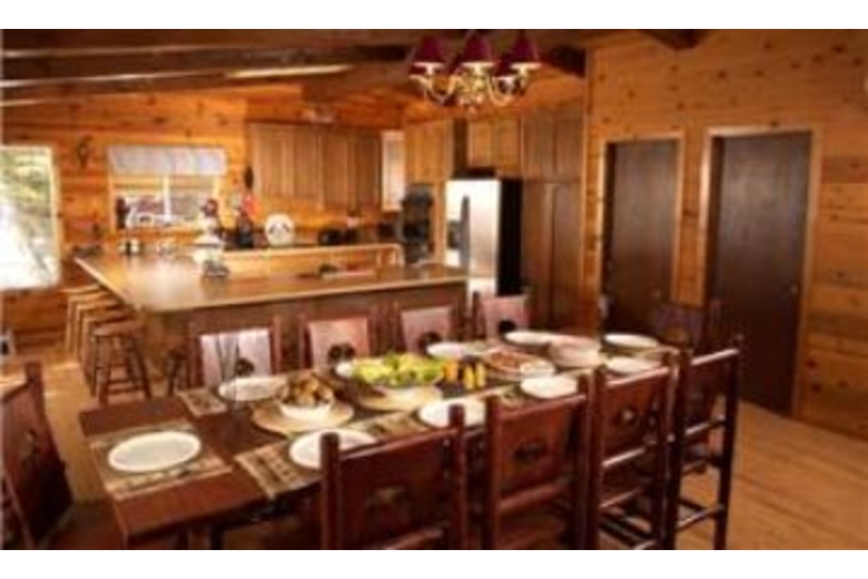 This five bedroom and three bathroom cabin is very charming, extremely spacious, and decorated throughout with log cabin charm and mountain appeal. This home features high speed Internet access, a large LCD wide screen TV with surround sound, DVD player, VCR, a Jacuzzi tub in the master bathroom, a washer and dryer, and a wood burning stove that adds to the warm, cozy ambiance this cabin provides. Bedding consists of one king bed, two queen beds, and three full beds providing accommodations for up to twelve guests. The spacious kitchen is beautiful with custom cabinetry and counter tops. a breakfast bar, a large dining table, and stainless steel appliances perfect for even the most experienced chef. Enjoy added entertainment with the pool table, private hot tub, and barbecue grill for outdoor entertaining. This home is pet friendly.Surrounding Description