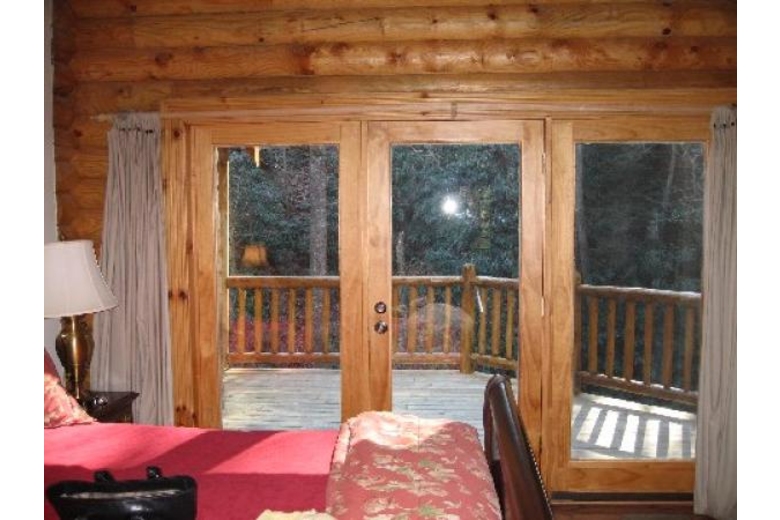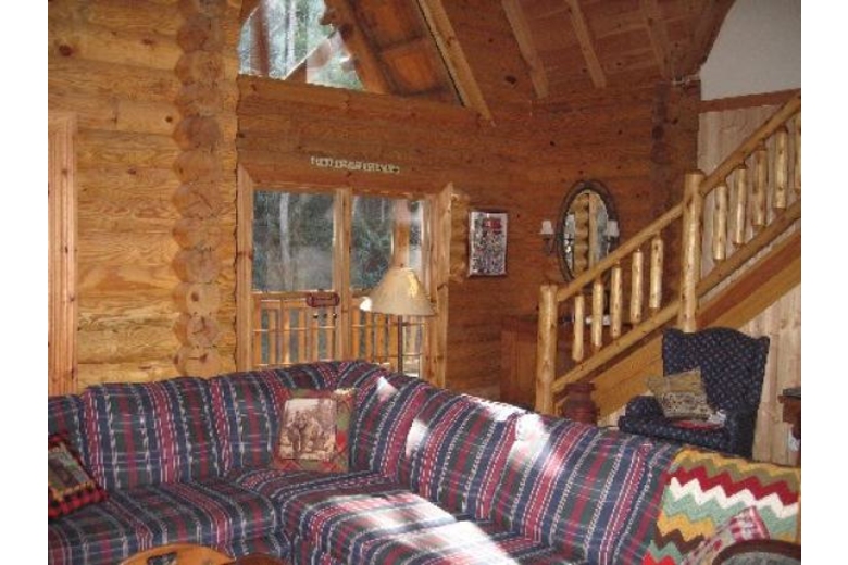 Our well furnished 3 bedroom cabin rental Burnsville can accommodate up to eight vacationers comfortably. The first floor master bedroom includes a queen-size bed and a private bathroom with walk-in shower. The second upstairs bedroom also hosts a queen-size bed and the third one contains twin beds. Both the queen-size beds are flanked by nightstands and lamps for reading purpose. The second and third bedrooms feature a small balcony and all the bedrooms offer nice views of the creek. There is a loft with high rise king-size bed, sofa, TV and a huge picturesque window. The kitchen is well stocked with wine cooler, coffee grinder and everything that you would require to cook delicious meals.