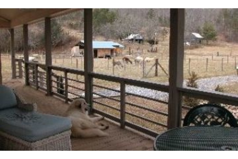 Our cabin has a surround porch for relaxing and listening to the melodic sounds of the creek, and provides all amenities. Just bring your food!Surrounding Description