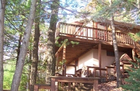 Cabin 3, the Swiss Chalet is nestled in a valley on the side of a mountain surrounded by wilderness and is located in the Foot hills of the Pocono Mountains, Kunkletown, PA. As you enter the screened in porch area, there is plenty of comfortable furniture to relax and enjoy the beautiful scenery of the out doors. You can either continue through to the large wooden deck over looking nature, which will be all around you, or enter into the screened in hot tub that is built in the air, over looking the valleys and mountains. This is truly a place you need to experience. You will talk about your experience at Cabin 3 for a long time. Once you visit this piece of serenity on earth, you will want to make it "the place" to visit year after year.