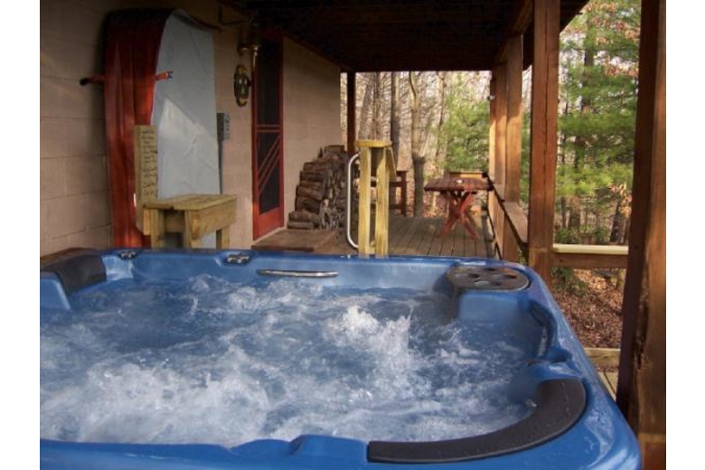 Cabin #5 rests on the highest peak of the mountain and has an amazing view of the Blue Mountains and the Appalachian Trails. Enjoy the out doors and view from two huge wooden decks, one upper and one lower while you soak in a 6 person Jacuzzi. This cabin is completely secluded with only woods and wilderness that surround it.