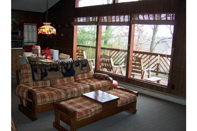 The amenities are just amazing, more than the average. It has a huge 6 persons Jacuzzi outside on the lower deck. A wood stove with a glass front to watch a cozy fire. The TV plays DVD and VHS movies. It has Digital cable with the TV guide right on the TV. Upstairs, there are two private bedrooms, 1 bath, full kitchen, dining room table, beautiful living room with comfortable furniture and all this with just an amazing view.