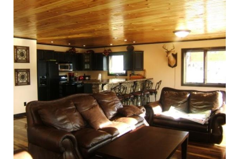This Cabin has One King size bed, two Queen beds, bunk beds and queen sleeper sofa. All four bedrooms open onto decks with panoramic lake views. Check out LakeCabin4Rent . com for more pictures!