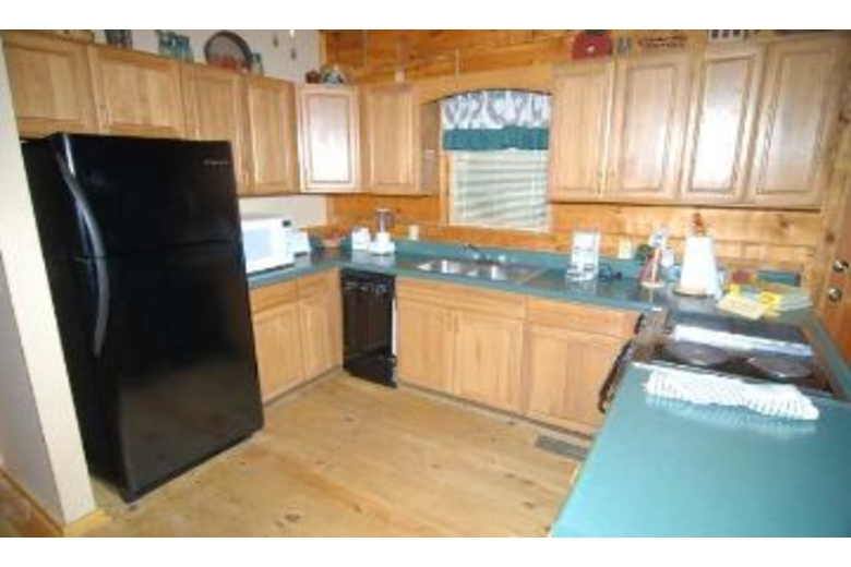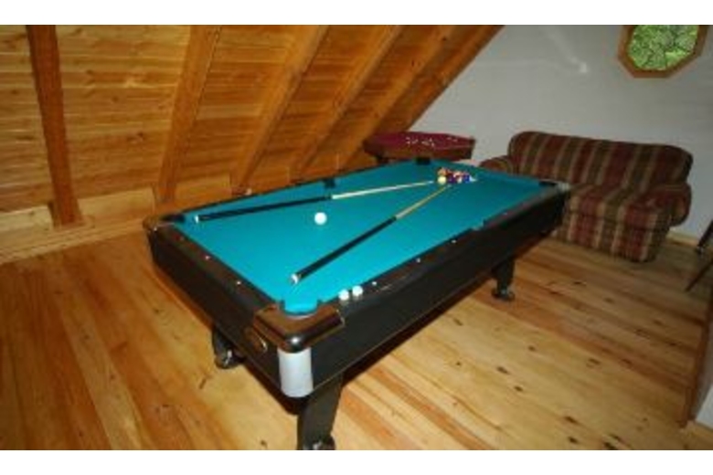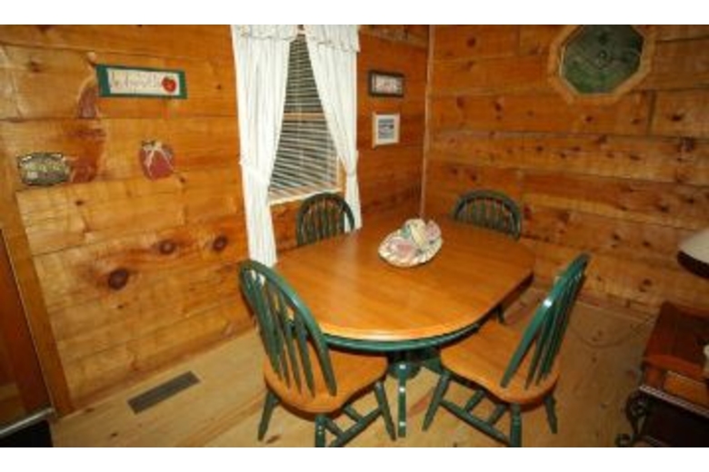 This one bedroom, two bathroom cabin is completely secluded in the woods. This cabin has a fully equipped kitchen, wood burning fireplace, two TVs, VCR, stereo, pool table, hot tub, swimming pool access and charcoal grill.Surrounding Description