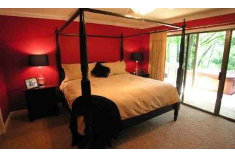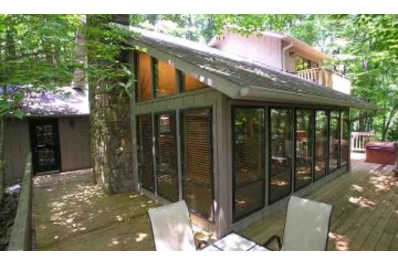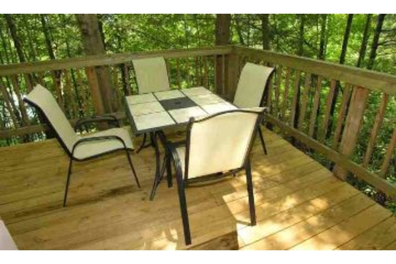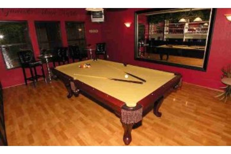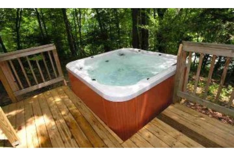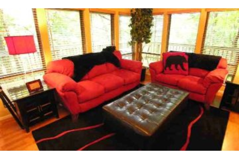 This two bedroom, two bathroom cabin is the perfect honeymoon or couples retreat. This cabin has a fully equipped kitchen, wood burning fireplace, washer and dryer, five TVs, VCR, two DVD players, two stereos, pool table and hot tub.Surrounding Description