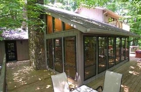 This two bedroom, two bathroom cabin offers a peaceful and inviting wooded surroundings. This cabin has a fully equipped kitchen, wood burning fireplace, washer and dryer, three TVs, VCR, two DVD players, stereo, hot tub, swimming pool access and grill.Surrounding Description