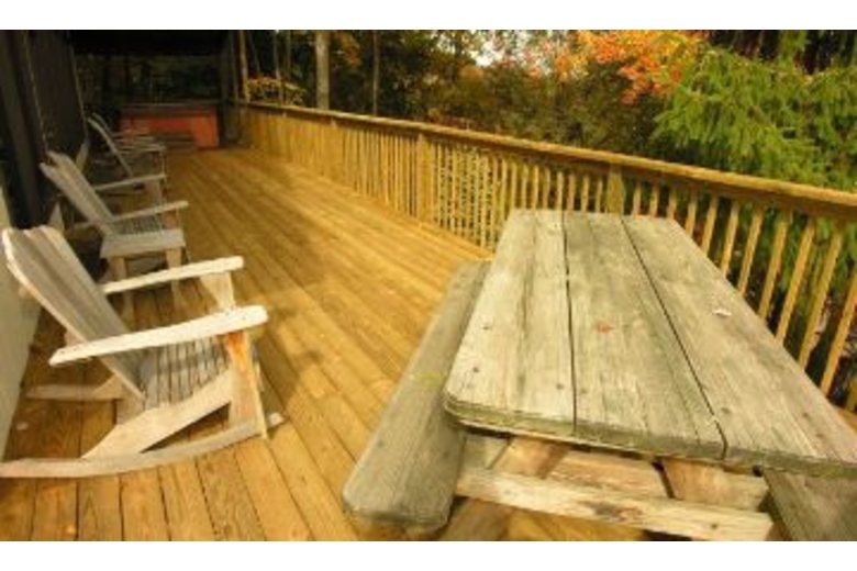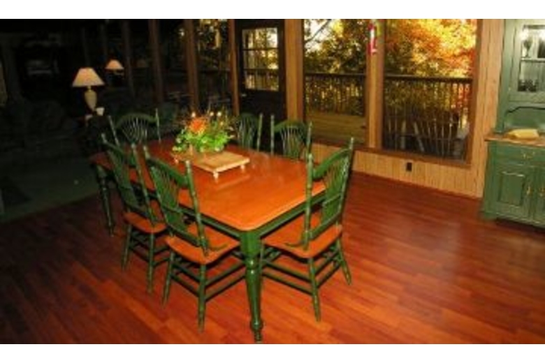 This three bedroom, three bathroom cabin is tucked back in a lovely wooded area, only minutes from downtown and moments away from the Ski Lodge. This cabin has a fully equipped kitchen, two wood burning fireplaces, washer and dryer, high speed Internet, four TVs, VCR, DVD player, stereo, game room, pool table, two classic arcade video games, hot tub and swimming pool access.Surrounding Description