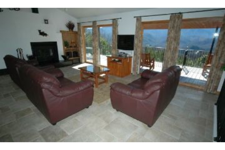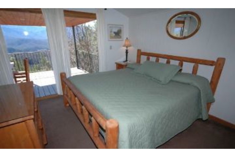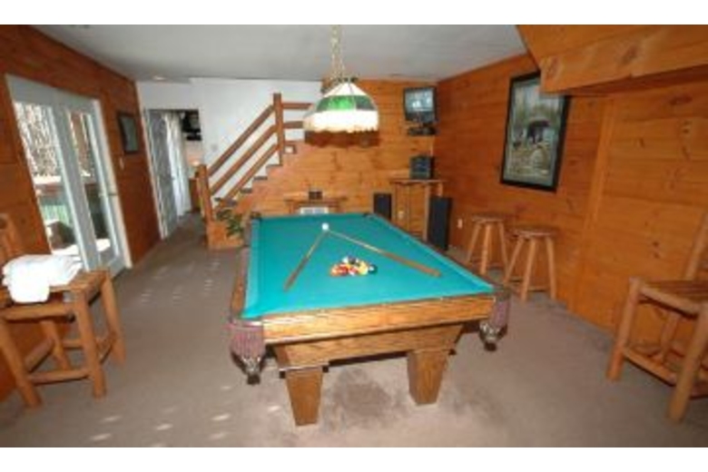 This three bedroom, three bathroom cabin has a breathtaking view of Mt. LeConte. This cabin has a fully equipped kitchen, wood burning fireplace, washer and dryer, six TVs, five VCRs, five DVD players, stereo, game room, pool table, foosball table, hot tub, swimming pool access parking.Surrounding Description