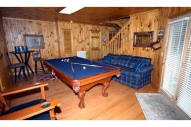 This three bedroom, three and a half bathroom home has a spectacular view of Mount LeConte. Inside you will find a fully equipped kitchen, gas fireplace, high speed wireless Internet, washer and dryer, free long distance phone calls, five TVs, two VCRs, two DVD players, stereo, pool table, hot tub, gas grill, swimming pool access and parking.Surrounding Description