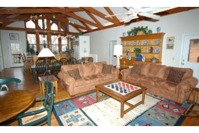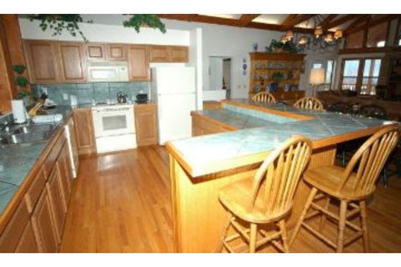 Grandview Manor is a lovely two level, lodge style home with wood siding and lovely stone features. Inside you are greeted by a spacious great room just loaded with country charm, cathedral ceilings, lovely exposed beams and a huge stone fireplace; all a perfect setting for a mountain retreat. There are many features in this six bedroom home, in suite baths in every bedroom, game room with pool table and an awesome mountain view which can be enjoyed off of either deck as well as a hot tub that can seat as many as eight people.