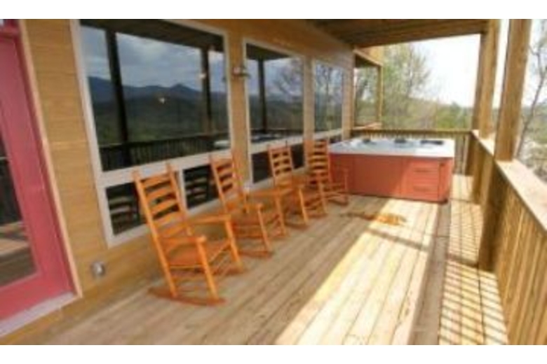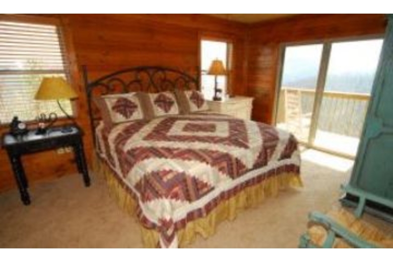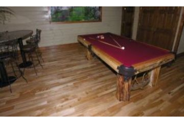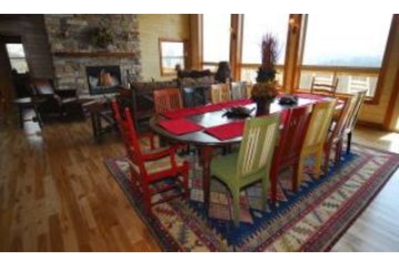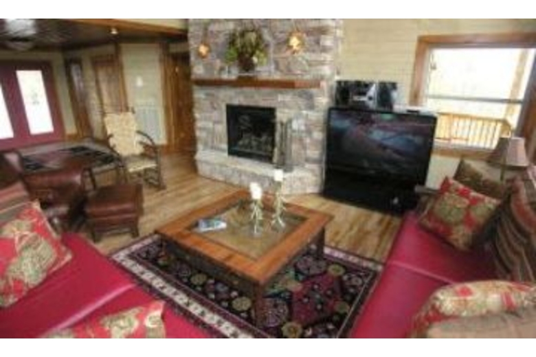 This seven bedroom, seven and half bathroom cabin has a 360 degree view. This house has a fully equipped kitchen, two gas fireplaces, eleven TVs, eleven DVD/VCRs, high speed wireless Internet, pool table, stereo, hot tub, swimming pool access and parking.Surrounding Description