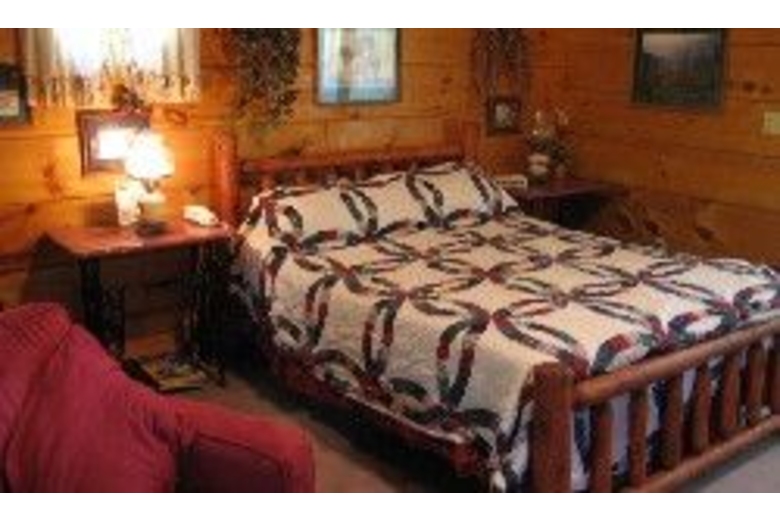 Mountain Eden has a lot to offer. It has a front and back deck. Go through the entrance and a kitchen area sits to your left. To your right is a bathroom. The main part of the cabin contains a Queen bed, Jacuzzi for two, fireplace, TV, VCR, and DVD player. Two large doors open up on the back deck where a large Hot Tub is waiting for you to enjoy.Surrounding Description