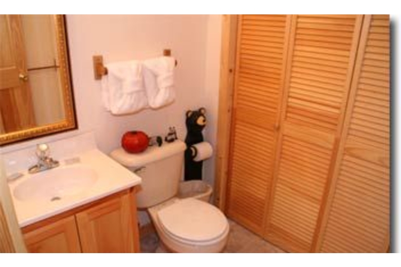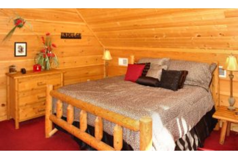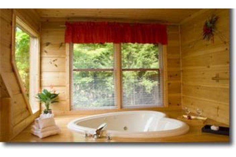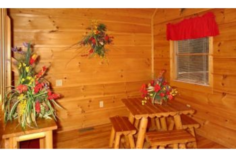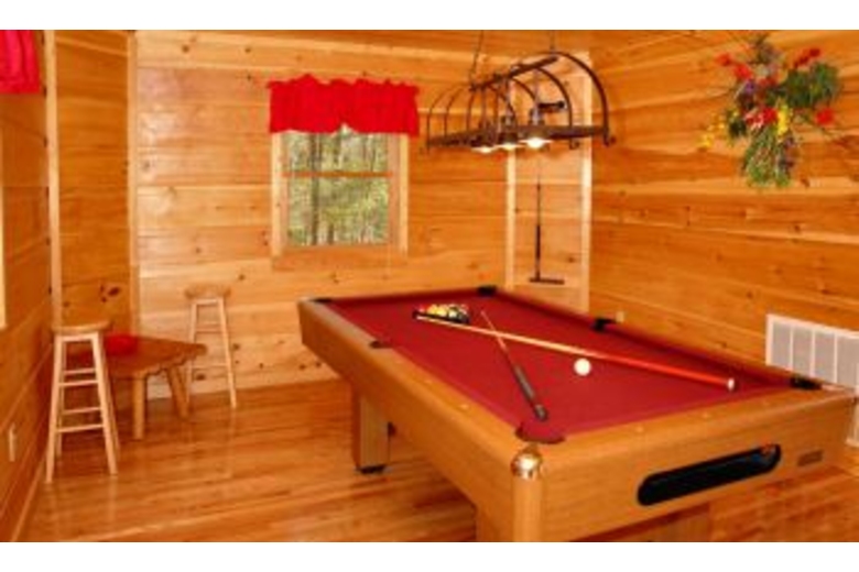 This one bedroom, one and a half bath cabin features a fully equipped kitchen with microwave for quick meals or snacks, washer, dryer, heart-shaped jetted tub, satellite TV, DVD, pool table, gas fireplace, porch swing, barbecue, outdoor hot tub and great views.Surrounding Description