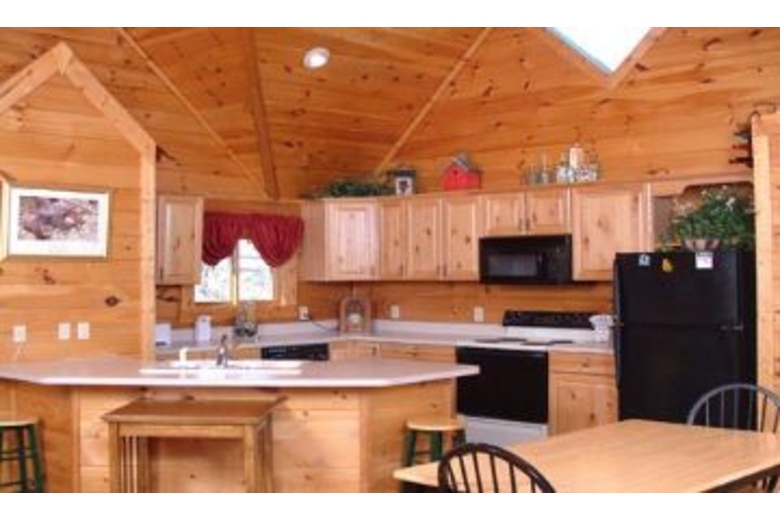 This cabin has three bedrooms and three and a half bathrooms. There are king beds in all three bedrooms.You will truly feel like you are in the lap of luxury when you relax in front of the huge rock fire place . The kitchen comes fully equipped to make you stay relaxing.Surrounding Description