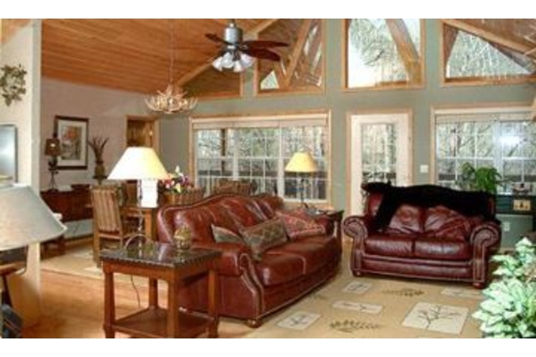 This is a four bedroom, five bathroom cabin. There are king beds in all four bedrooms. In the game room you will find a pool table, a table for playing cards and other games, and a sitting area where you can watch TV. The kitchen comes fully equipped for your convenience.Surrounding Description