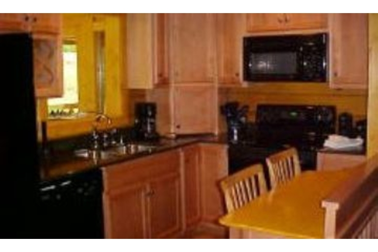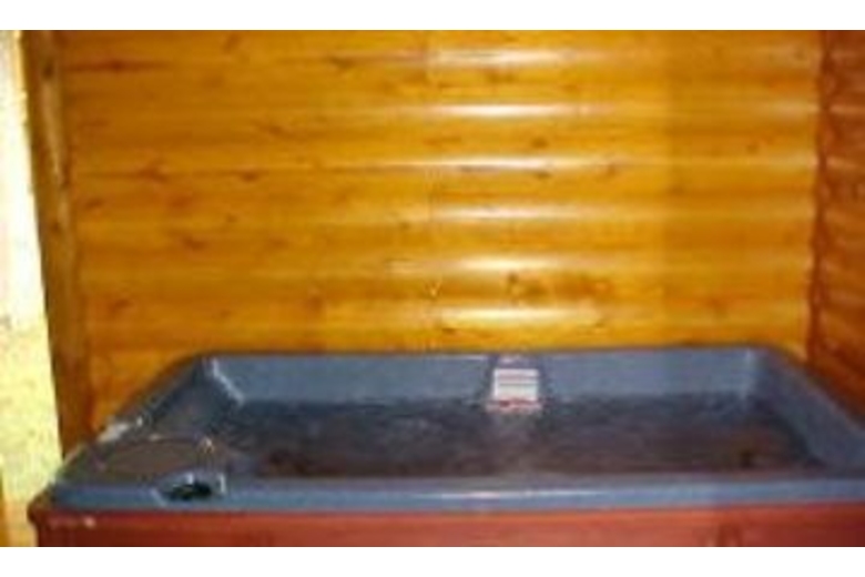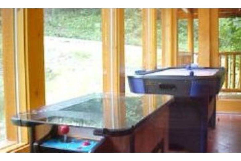 This one bedroom, two bath cabin has a fully equipped kitchen with microwave for quick meals or snacks, satellite TV, DVD, VCR, double-sided gas fireplace, washer, dryer, air hockey, arcade game, dart board, hot tub and Jacuzzi plus gas grill.Surrounding Description