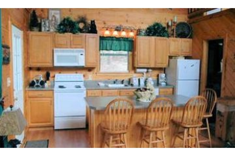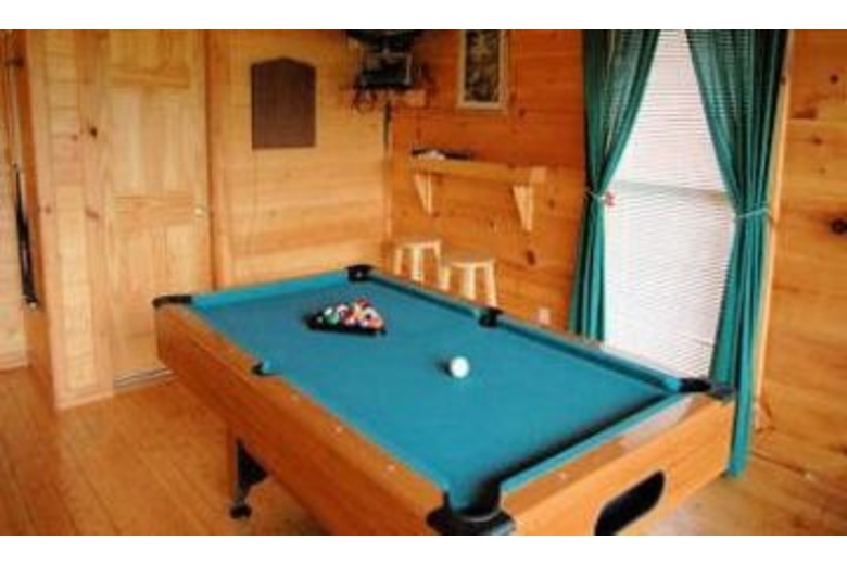 This one bedroom, two bath cabin has a fully equipped kitchen with microwave for quick meals or snacks, satellite TV, VCR, DVD, electric fireplace, washer, dryer, pool table, hot tub and Jacuzzi plus gas grill.Surrounding Description