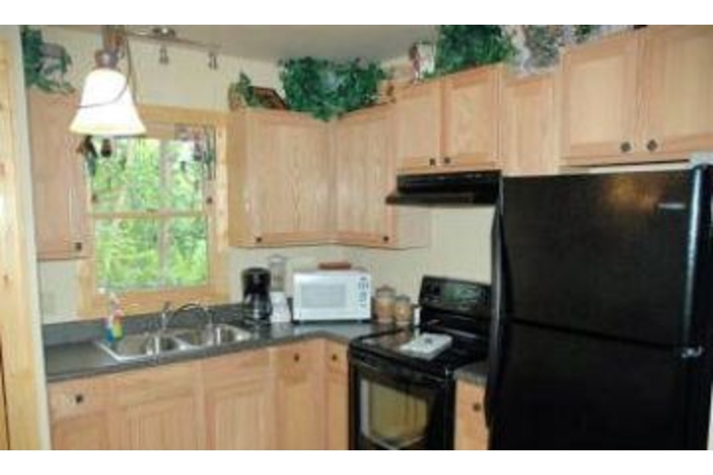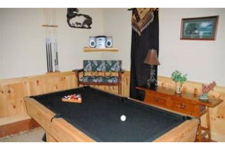 This one bedroom, one bath cabin has a fully equipped kitchen with microwave for quick meals or snacks, cable TV, DVD, pool table, washer, dryer, hot tub and Jacuzzi.Surrounding Description