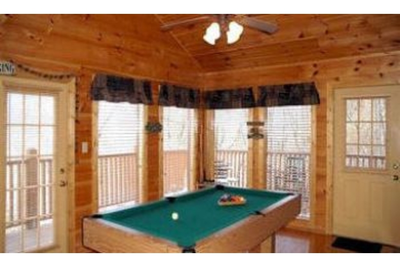 This two bedroom, one and a half bath cabin has a fully equipped kitchen with microwave for quick meals or snacks, cable TV, DVD, two gas fireplace, washer, dryer, pool table, X Box, hot tub and Jacuzzi plus barbecue grill.Surrounding Description