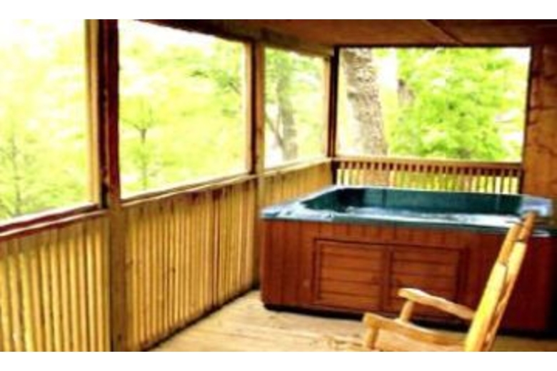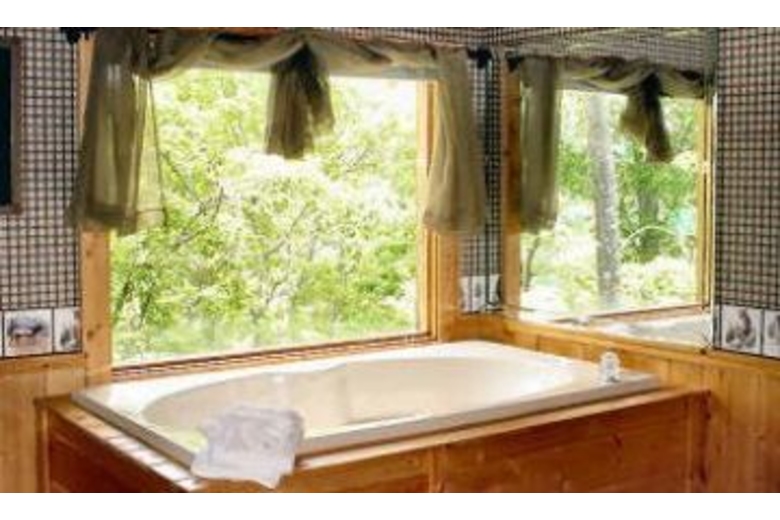This two bedroom, two bath cabin has a fully equipped kitchen with microwave for quick meals or snacks, satellite TV, DVD, gas fireplace, washer, dryer, gas grill plus hot tub and Jacuzzi.Surrounding Description