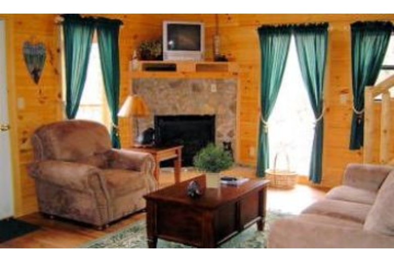 This two bedroom, two bath cabin has a fully equipped kitchen with microwave for quick meals or snacks, satellite TV, DVD, VCR, CD Stereo, gas fireplace, washer, dryer, pool table, gas grill plus hot tub.Surrounding Description