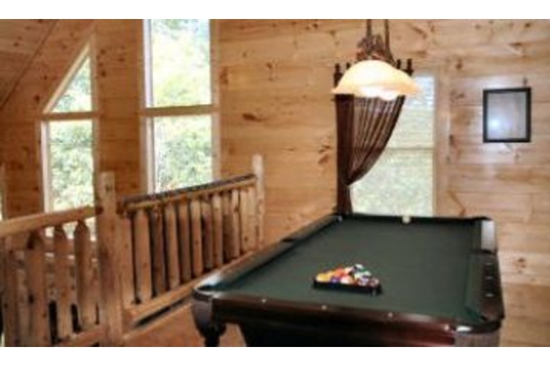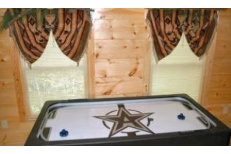 This two bedroom, two bath cabin has a fully equipped kitchen with microwave for quick meals or snacks, cable TV, three TVs, DVD, VCR, washer, dryer, gas fireplace, gas grill, pool table, air hockey, hot tub and Jacuzzi.Surrounding Description