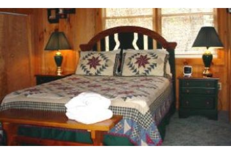 This cabin has hot tub, jacuzzi, air hockey and barbecue grill. There is also a wood-burning fireplace, fully equipped kitchen, large deck with rockers, swing and picnic table.Surrounding Description