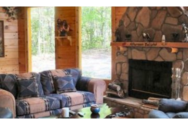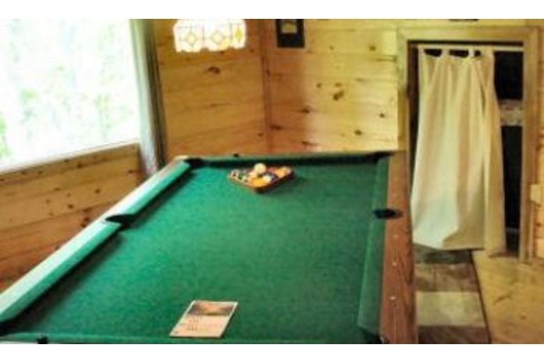 This one bedroom cabin features a queen size bed and queen sleep sofa. The kitchen is nicely equipped and there is a pool table for your use. You can snuggle up near the fireplace, or relax in the hot tub on the deck.Surrounding Description