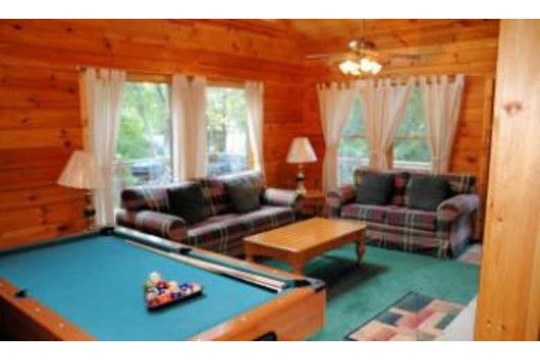 Enjoy a dip in the hot tub onthe private screened in porch or play a leisurely game of pool. Bring the whole family along, this cabin is pet friendly for those of us who don't like to leave Fido at homeSurrounding Description
