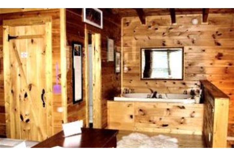 Mountain magic is a brand new log cabin in chalet village with spacious living area, spectacular mountain view, pool table, outdoor hot tub, indoor jacuzzi, & wood burning fire place.