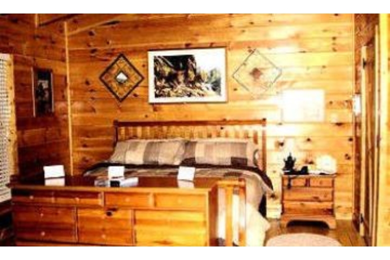 This cabin features a king bed and a queen sofa sleeper. The kitchen is nicely equipped, the furnishings are cozy and inviting, and the views are spectacular.Surrounding Description