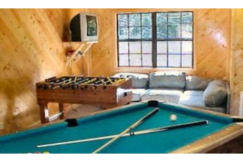 Be prepared for a "bearwatch" at this new log cabin that features a mock bear display, log-framed beds, big screen tv, foosball and playstation. you'll never want to leave.Surrounding Description